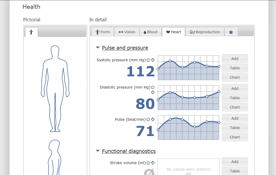 My Health State (MHS) — это простой и удобный сервис для наблюдения за своим здоровьем и физической формой. Cервис наглядно покажет как меняется Ваш вес, фигура, показатели крови, сердца и всего организма, предупредит в случае подозрительной динамики. По введенным данным MHS построит Ваш силуэт на выбранные даты — сразу видно, где прибавили, а где сбросили. Есть множество календарей (например, даты замены контактных линз) и уведомления о запланированных событиях.