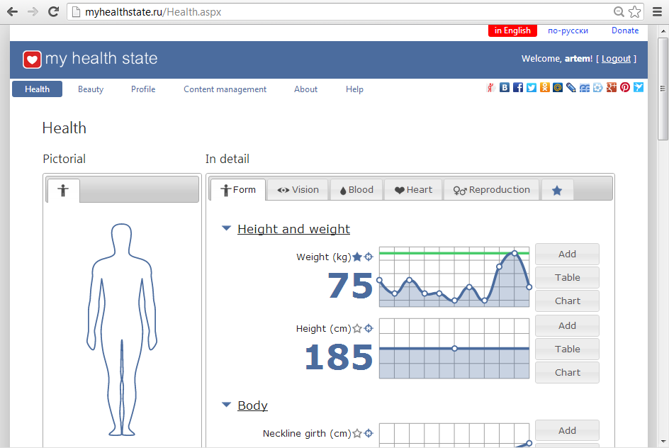 Онлайн-сервис для наблюдения за здоровьем и фигурой